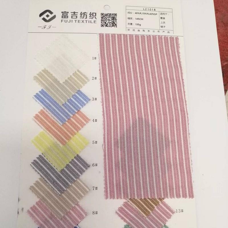 • 产品名称:梭织混纺条纹衬衣料 43%R ,15%N,42%SP, 145cm宽