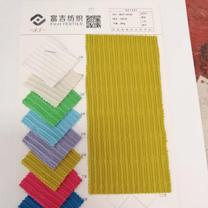• 产品名称:针织混纺条纹压泡弹力料 86%T ,14%SP, 130cm宽