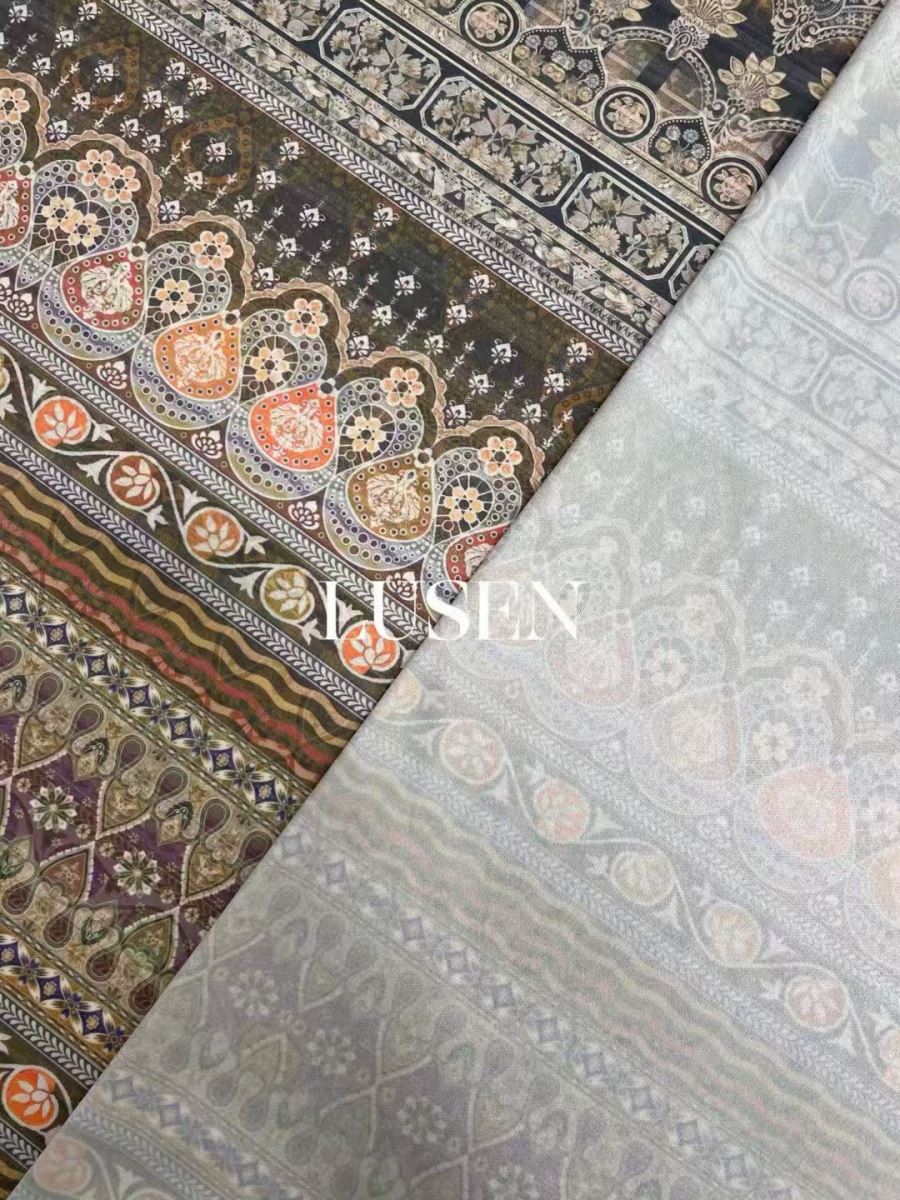 宝相花醋酸印花
