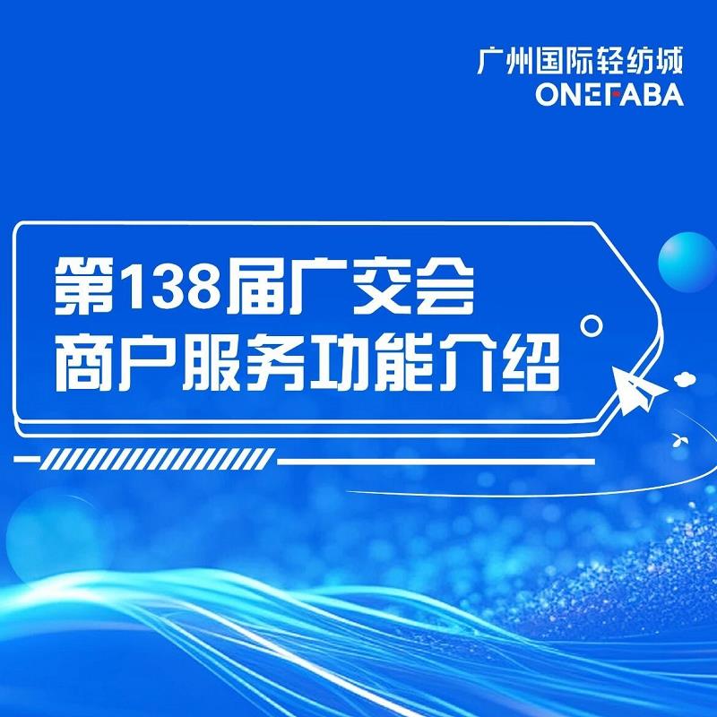 第138届广交会客商接待服务将于10月31日-11月4日举办,广州国际轻纺城将推出全方位的线上线下客商接待服务,线上主要依托轻纺城全球采购资源,运用广州国际轻纺网电商体系全渠道信息技术,提供展示推广服务、线上导购咨询、线上服务国内外采购客商,线下提供广告推广、资料派发、商贸对接、翻译以及导购咨询服务,为城内商户对接广交会线上线下资源,为广大商户带来更多宣传推广的机会,拓展商机!