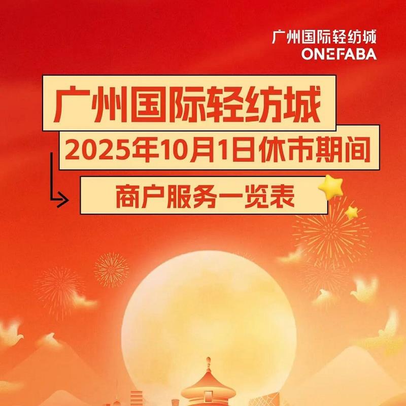 广州国际轻纺城五一劳动节休市一天,送上商户服务一览表