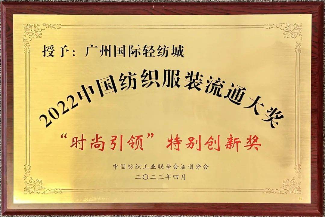 促流通扩消费,广州国际轻纺城荣获2022中国纺织服装流通大奖“时尚引领”特别创新奖